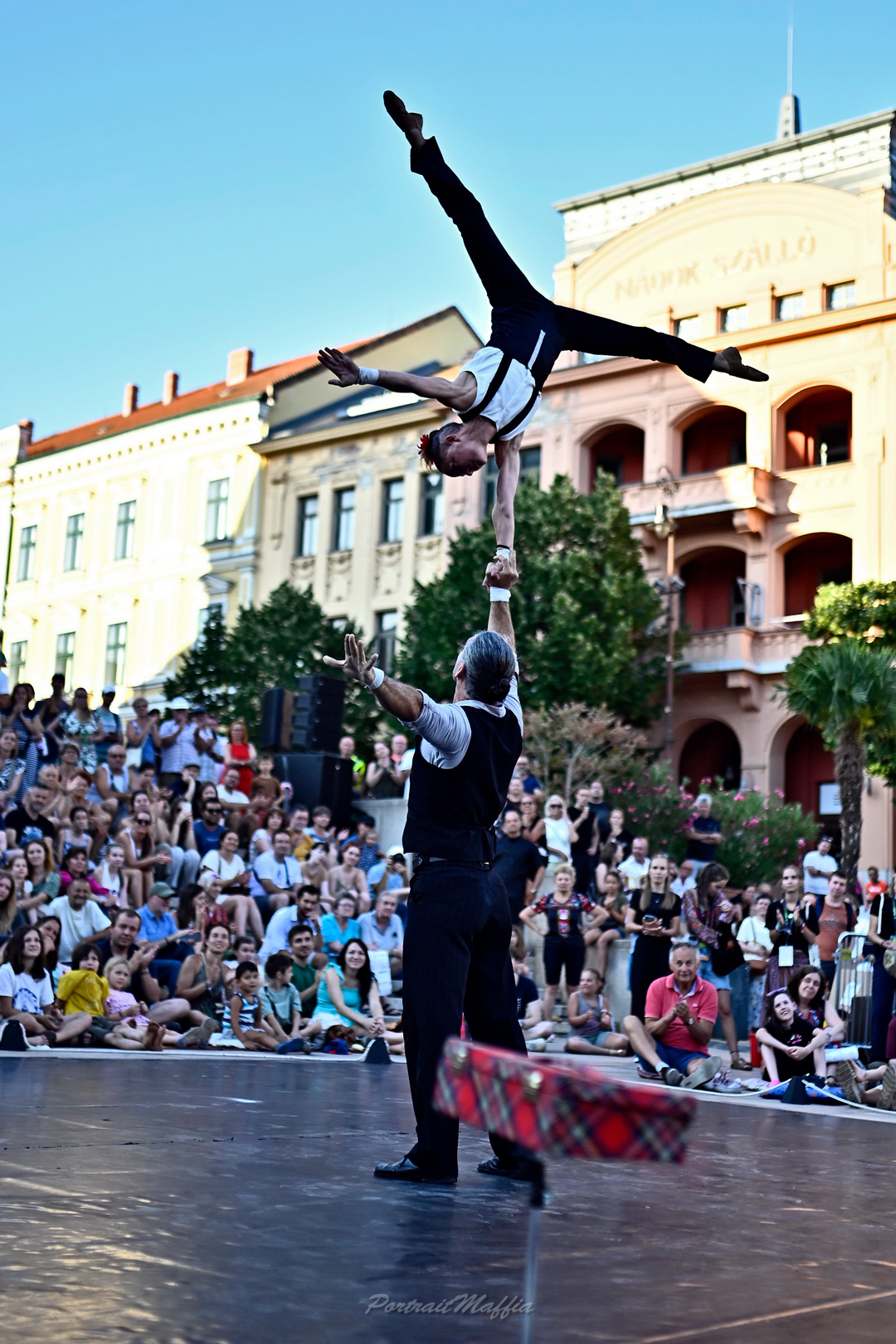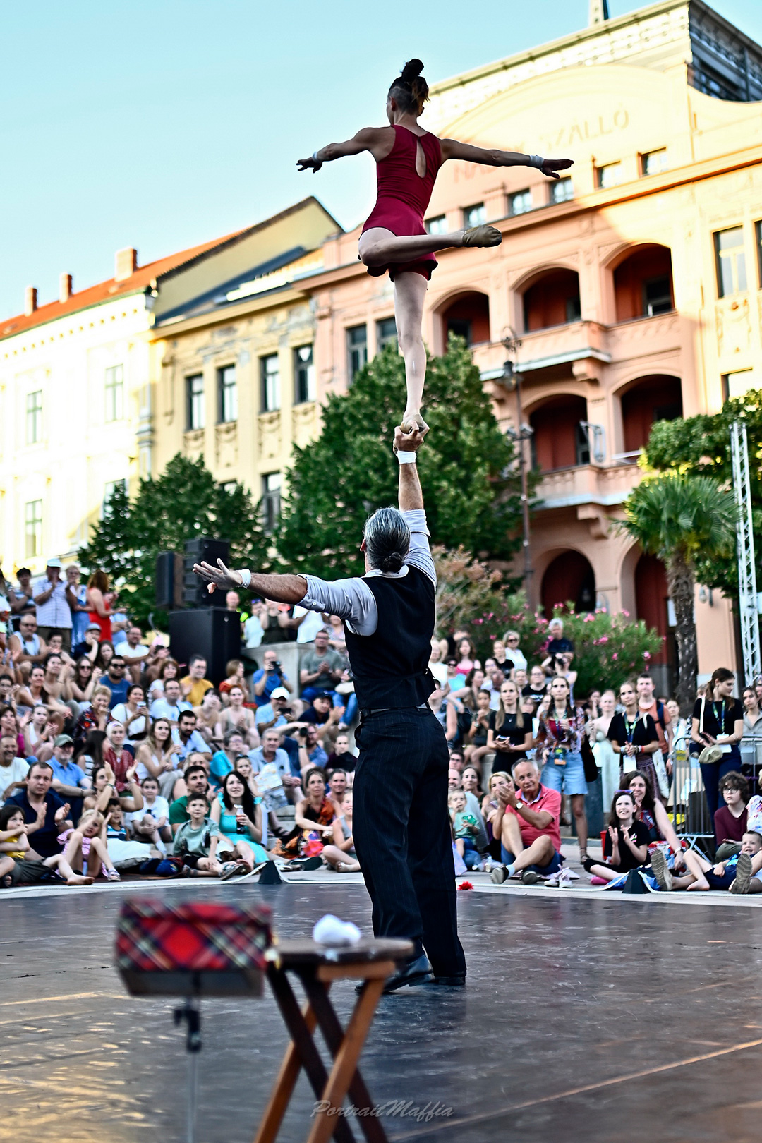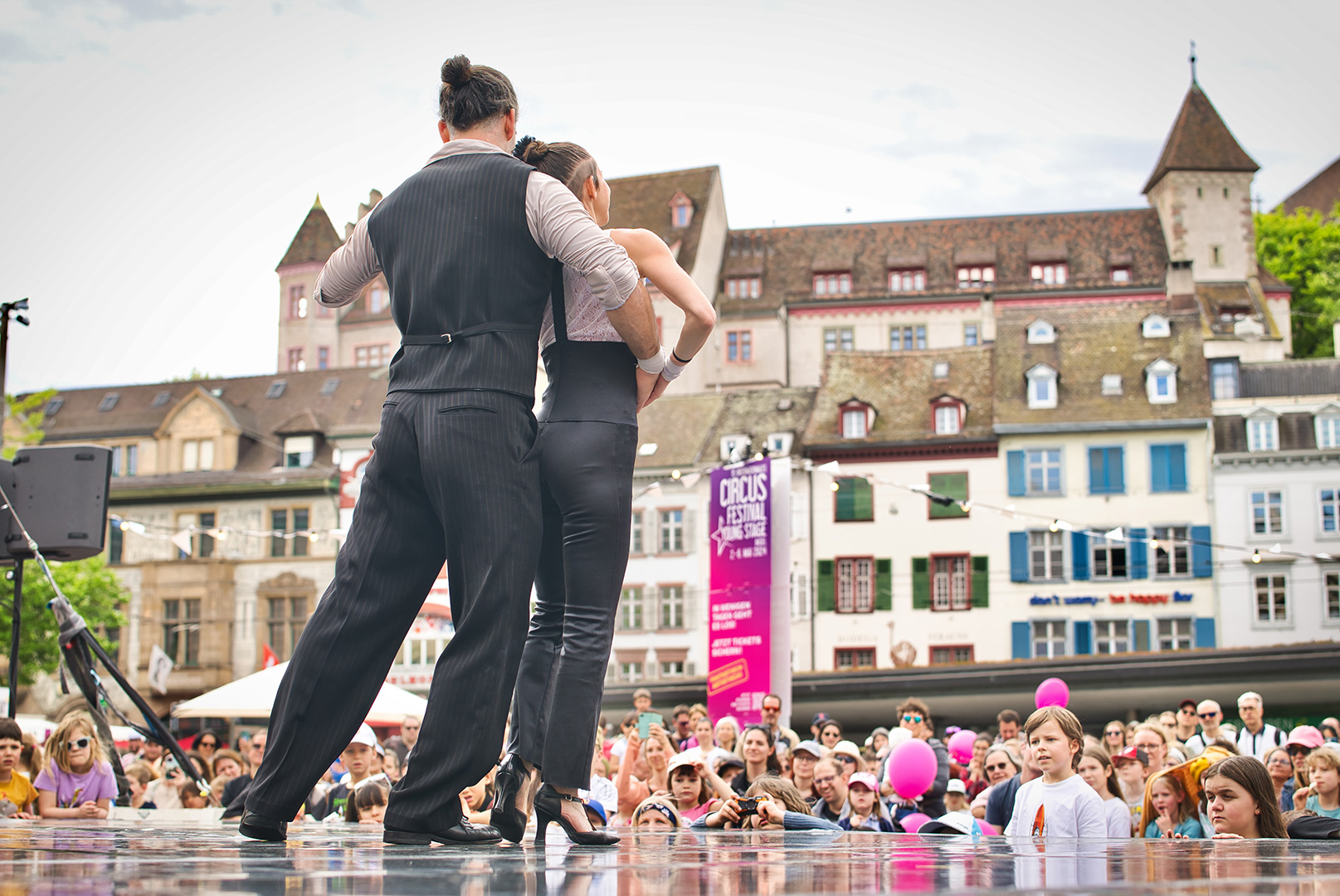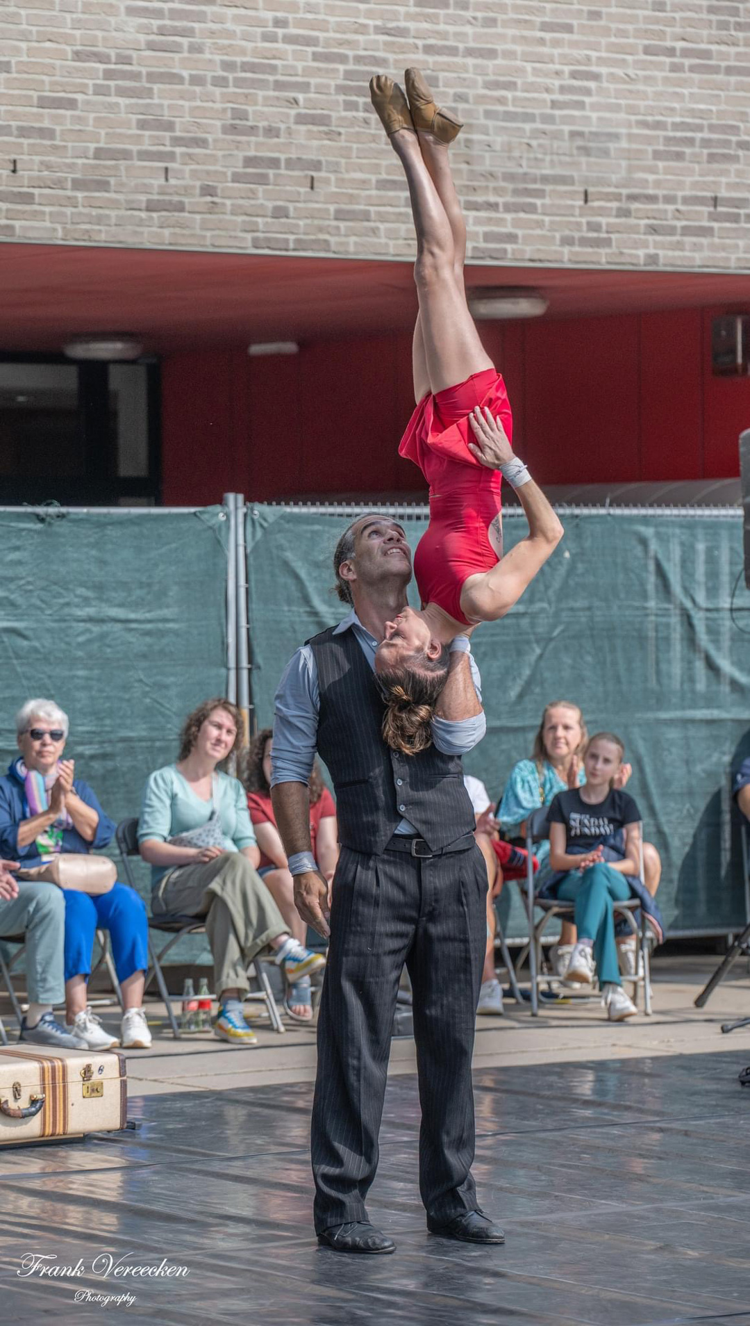Espectáculo de acrobacia en dúo, tango y comedia.