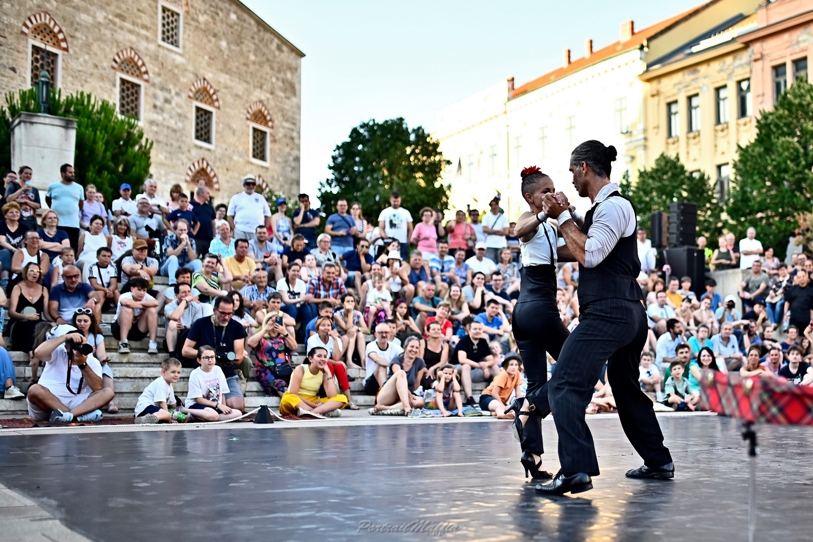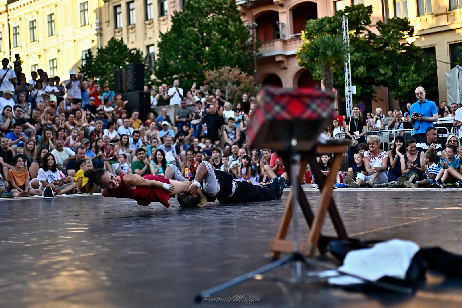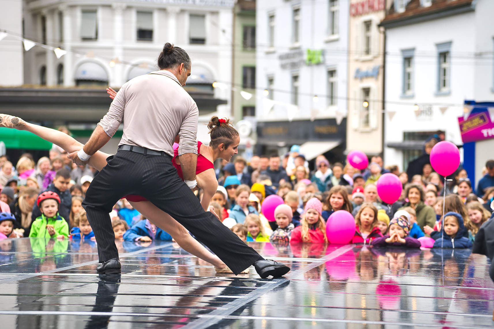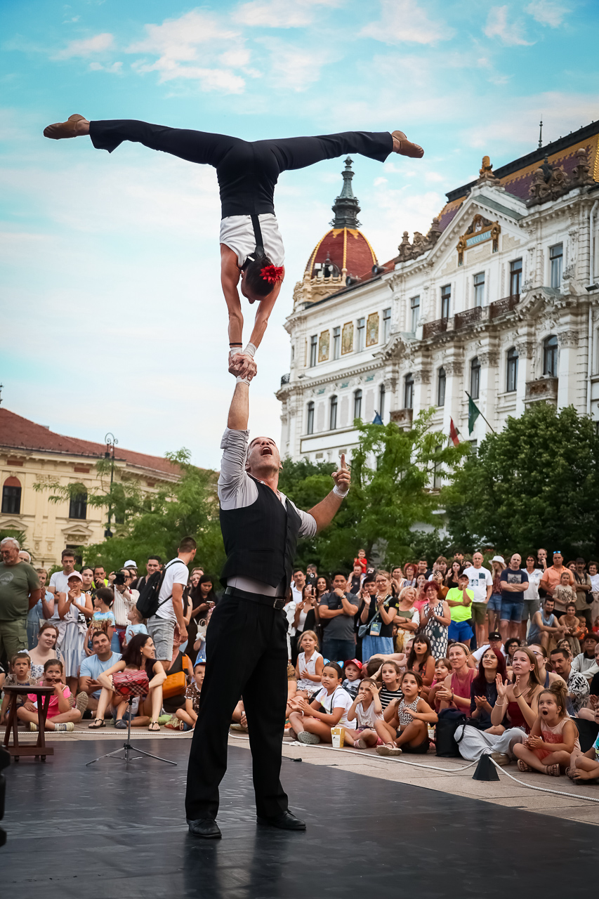 Espectáculo de acrobacia en dúo, tango y comedia.